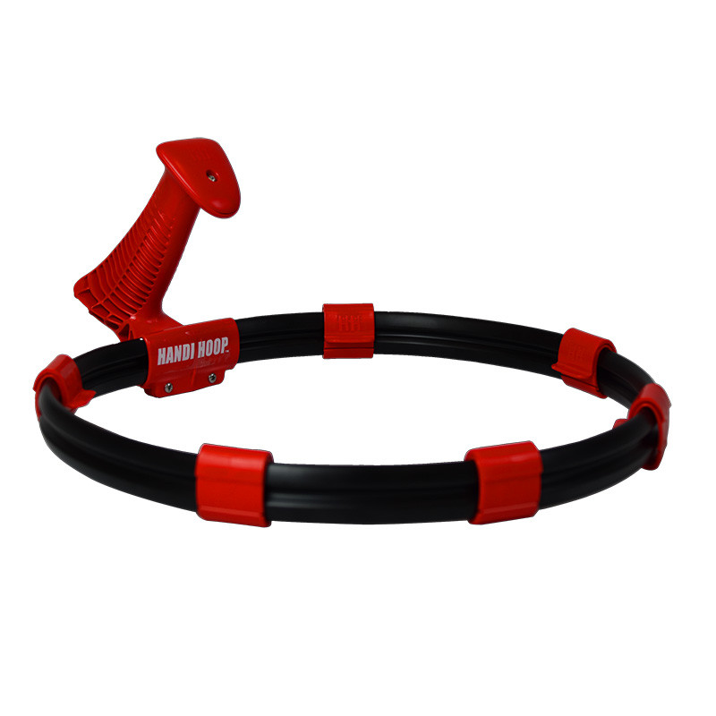 Porte-sac rond avec poignée mousse et élastique de fixation du sac.